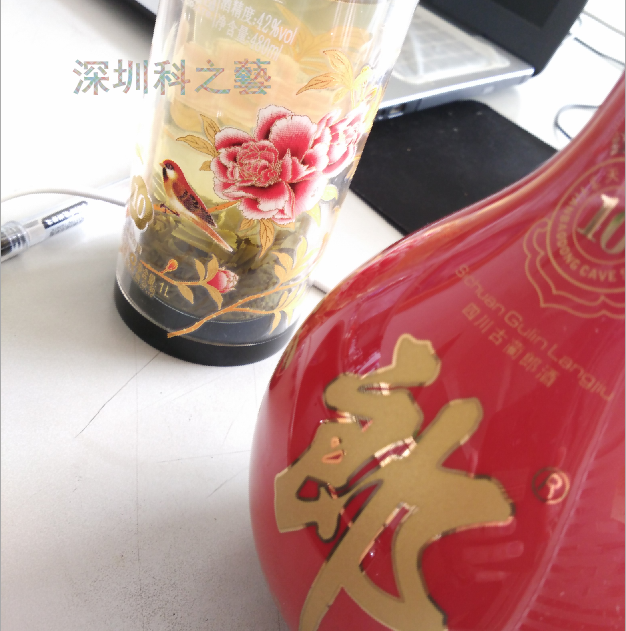 隨著玻璃熱轉(zhuǎn)印技術(shù)的不斷改進,酒瓶熱轉(zhuǎn)印變得可能。熱轉(zhuǎn)印工藝能滿足色彩豐富的外觀裝飾特點,為酒類行業(yè)畫上了“濃墨重彩”的一筆。請看下圖: