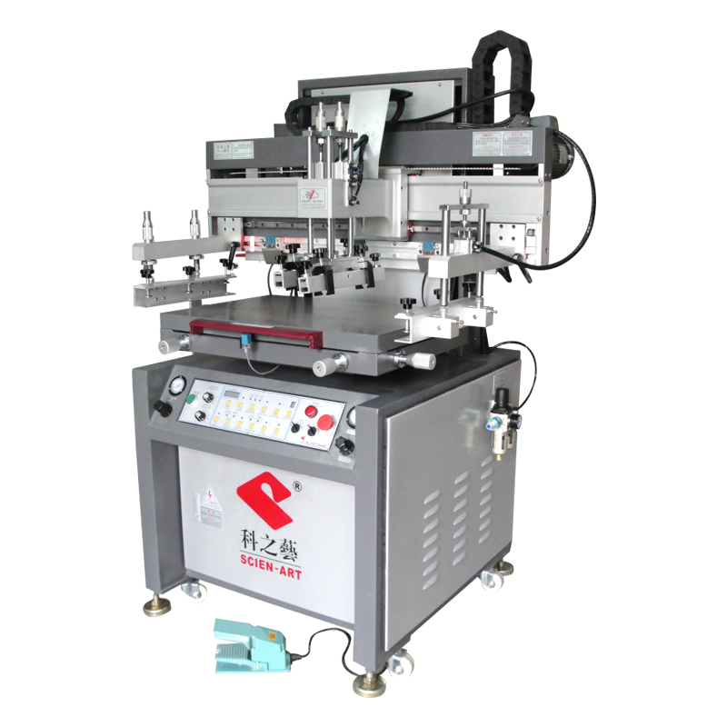1)立式結(jié)構(gòu),網(wǎng)版垂直上下升降,印刷頭左右動(dòng)作。